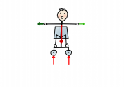 Es wirken an den Händen Kräfte nach links und rechts. Die Gewichtskraft zieht nach unten und an den Rollen des Stuhls wirken Kräfte, die den Stuhl nach oben drücken. Anton hat zusammen mit dem Stuhl eine Masse von 60kg, es wirkt eine Gewichtskraft von ca. 600N nach unten. Bei zwei Rollen müssen also pro Rolle 300N nach oben drücken.