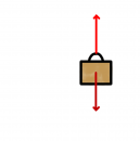 Man schneidet die Tasche aus der Umgebung frei. Die Gewichtskraft zieht die Tasche nach unten, mit der entgegengesetzt gleichgroßen Kraft drückt die Hand gegen die Halteschlaufe. Die Tasche ist im Kräftegleichgewicht, die Kraftsumme ist Null.