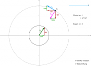 Ein Gegenstand umläuft ein Drehzentrum im Abstand r und der Winkelgeschwindigkeit [math]\omega[/math]. Zu einem Zeitpunkt t möchte man wissen: